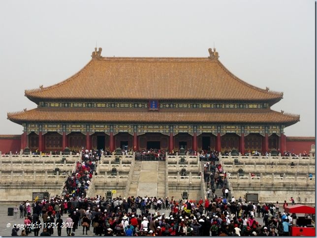 The City is set out with the main buildings in the centre of the site, fronted by enormous courtyards, with auxiliary buildings to the sides of this main setup. Apparently there are something like 900+ buildings on the site, so I think more than one visit is required, now there is a brilliant excuse for going back sometime! The Hall of Supreme Harmony, just to give you some idea of the scale of the place…